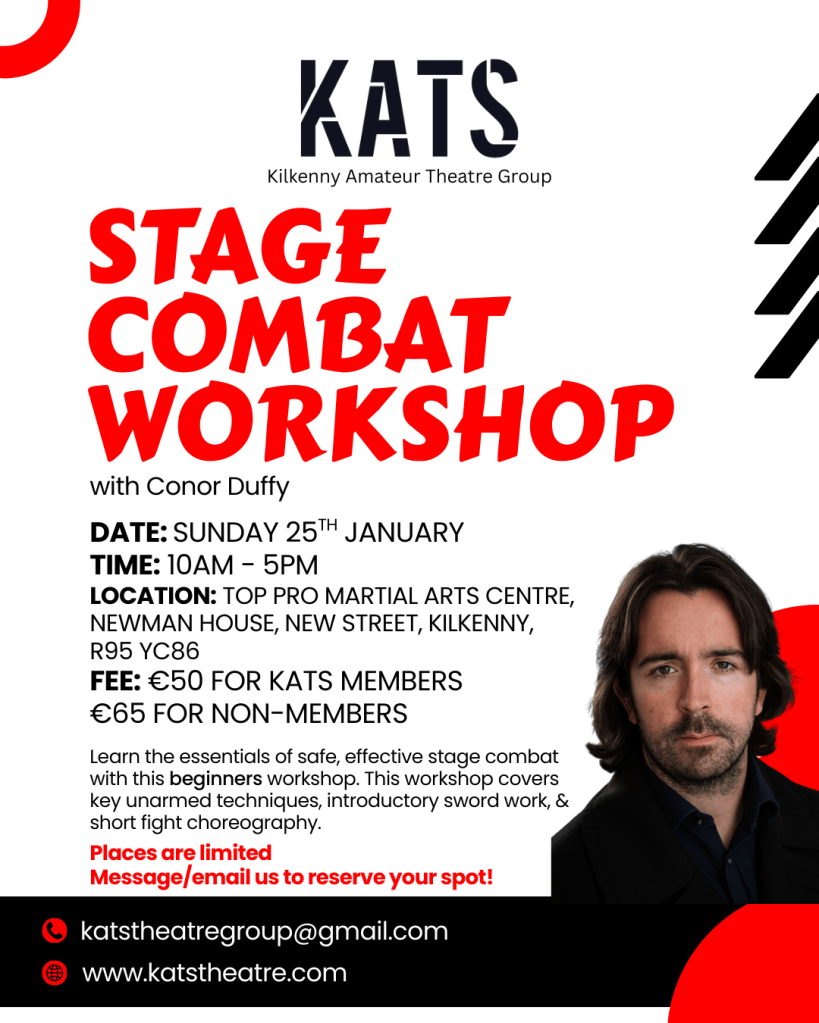 Don’t miss our Stage Combat Workshop this January with Conor Duffy. Learn the essentials of safe, effective stage combat with this beginners workshop. This workshop covers key unarmed techniques, introductory sword work, & short fight choreography.